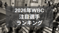 2026年WBC【2026年WBC】メンバー入りした注目選手ランキングまとめ!メジャー屈指のスーパースター達を徹底解説!各国代表に過去最多の大物選手達が集結! 2026年WBCに出場する大物選手ランキングをまとめました。例年以上にスター選手が多数参加する見込みで、ファンとしては目が離せません。 2026.01.142026年WBC