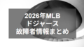 毎週更新【2026年MLB】ドジャースの怪我人まとめ!主力選手が多数故障者リスト入り!最新情報から怪我の詳細や復帰予定時期を解説! 2026年シーズンにおける、ドジャースの故障者情報をまとめました。ドジャースでは例年故障者が続出するため、選手の怪我には注意したいところです。 2026.02.142026年シーズン毎週更新