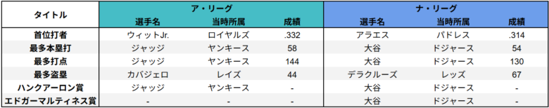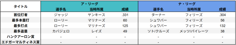 MLBのタイトル受賞者をまとめました