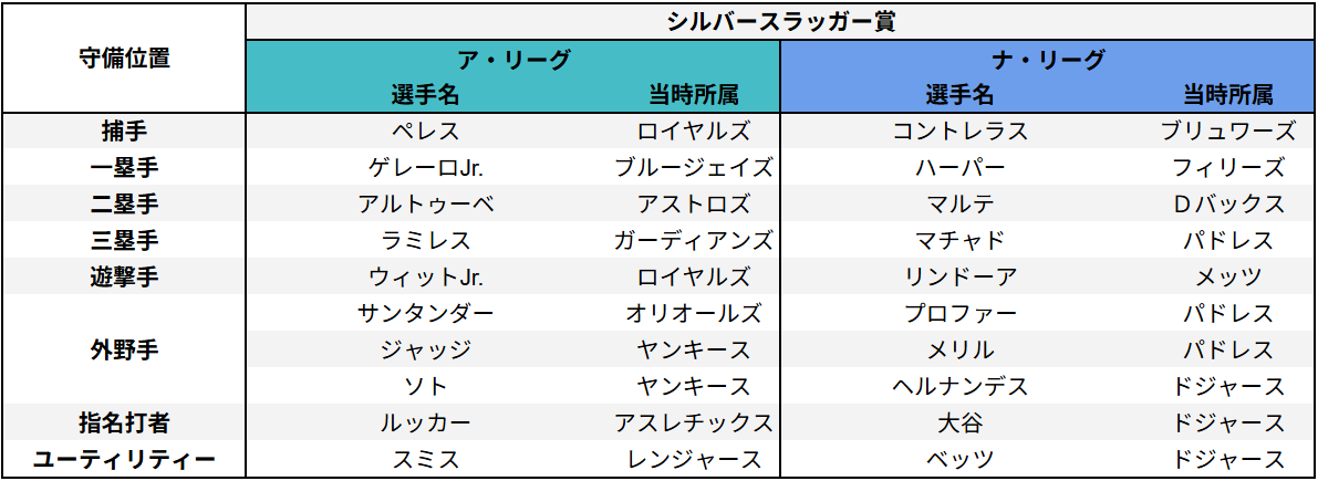 • シルバースラッガー賞
