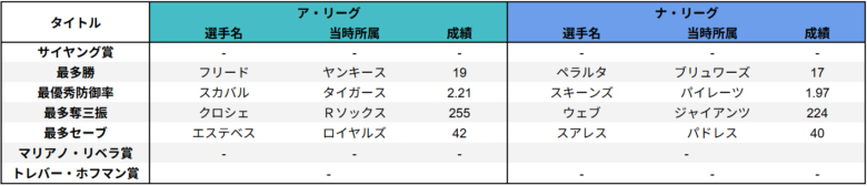 MLB投手タイトル一覧
