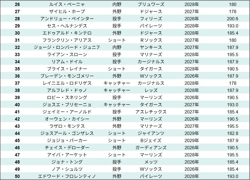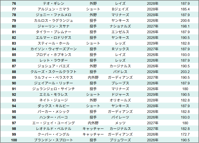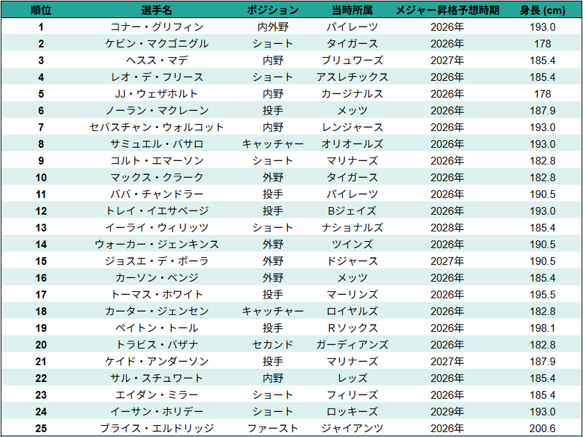 MLB全体のプロスペクトランキング