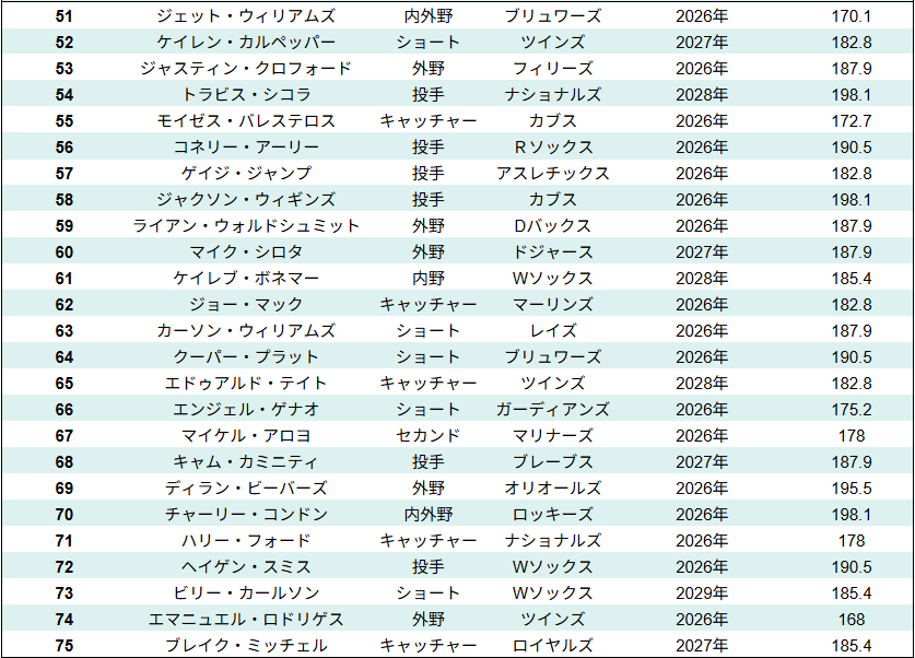 またMLB全体のプロスペクトランキング