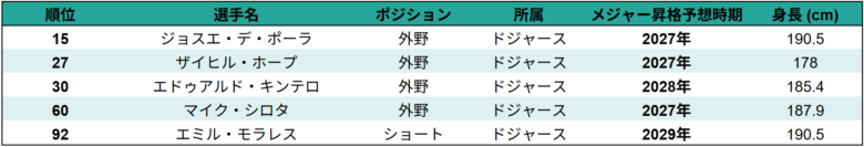 ドジャース所属の2026年トッププロスぺクト