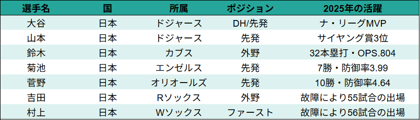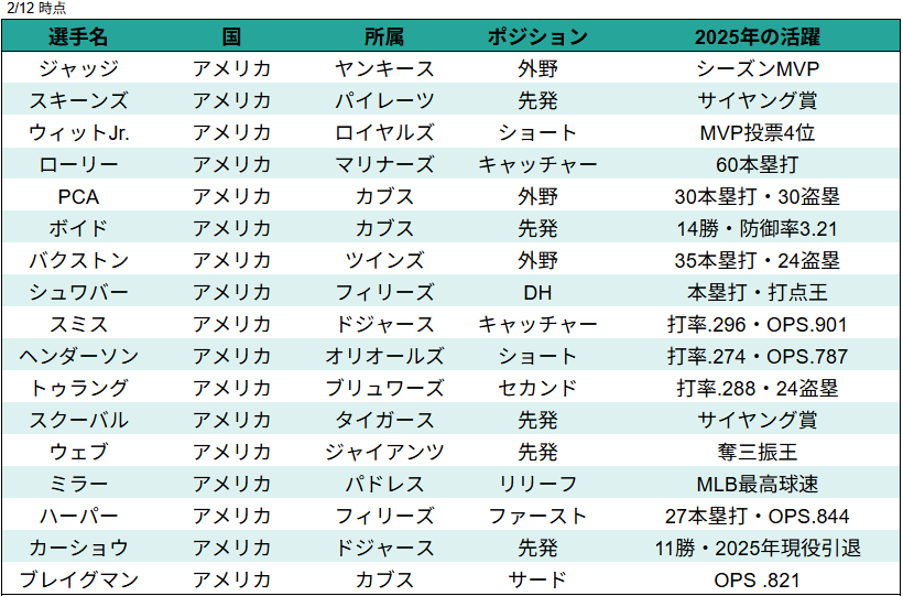 - 4 2026年WBCに参加するスター選手一覧