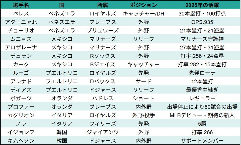 MLBのスター選手を多数輩出する国は
