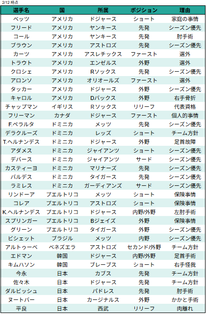 2026年WBC不参加の大物選手