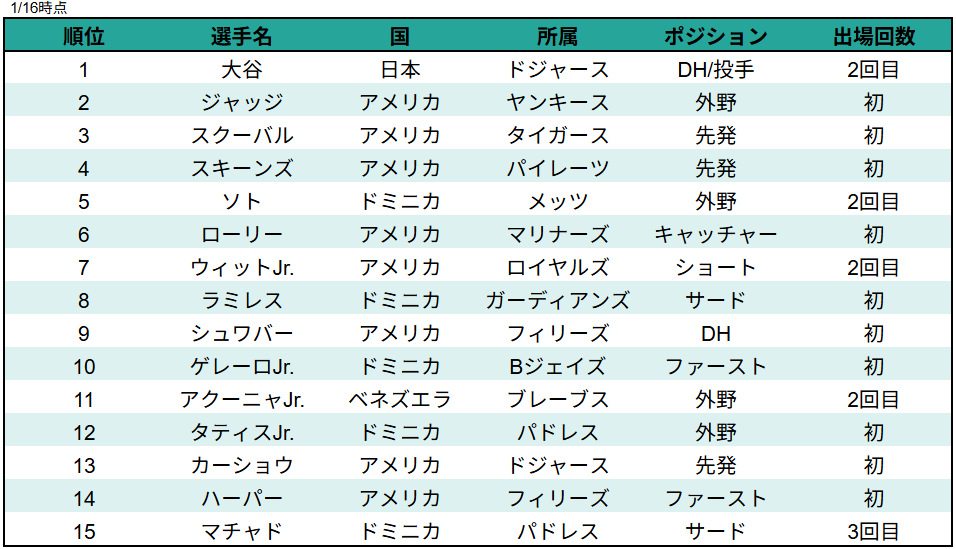 - 1.2 2位 アーロン・ジャッジ(アメリカ)