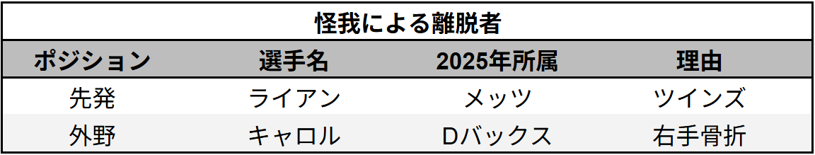 WBC不参加のアメリカ代表選手
